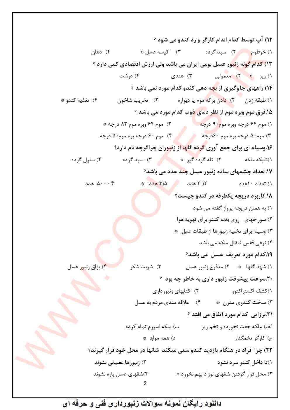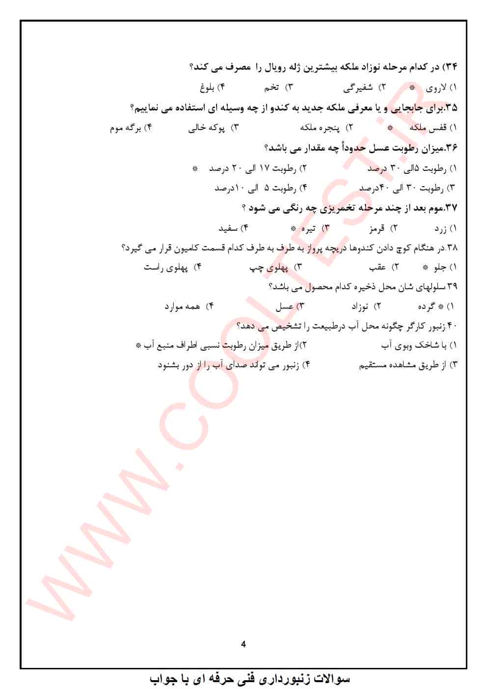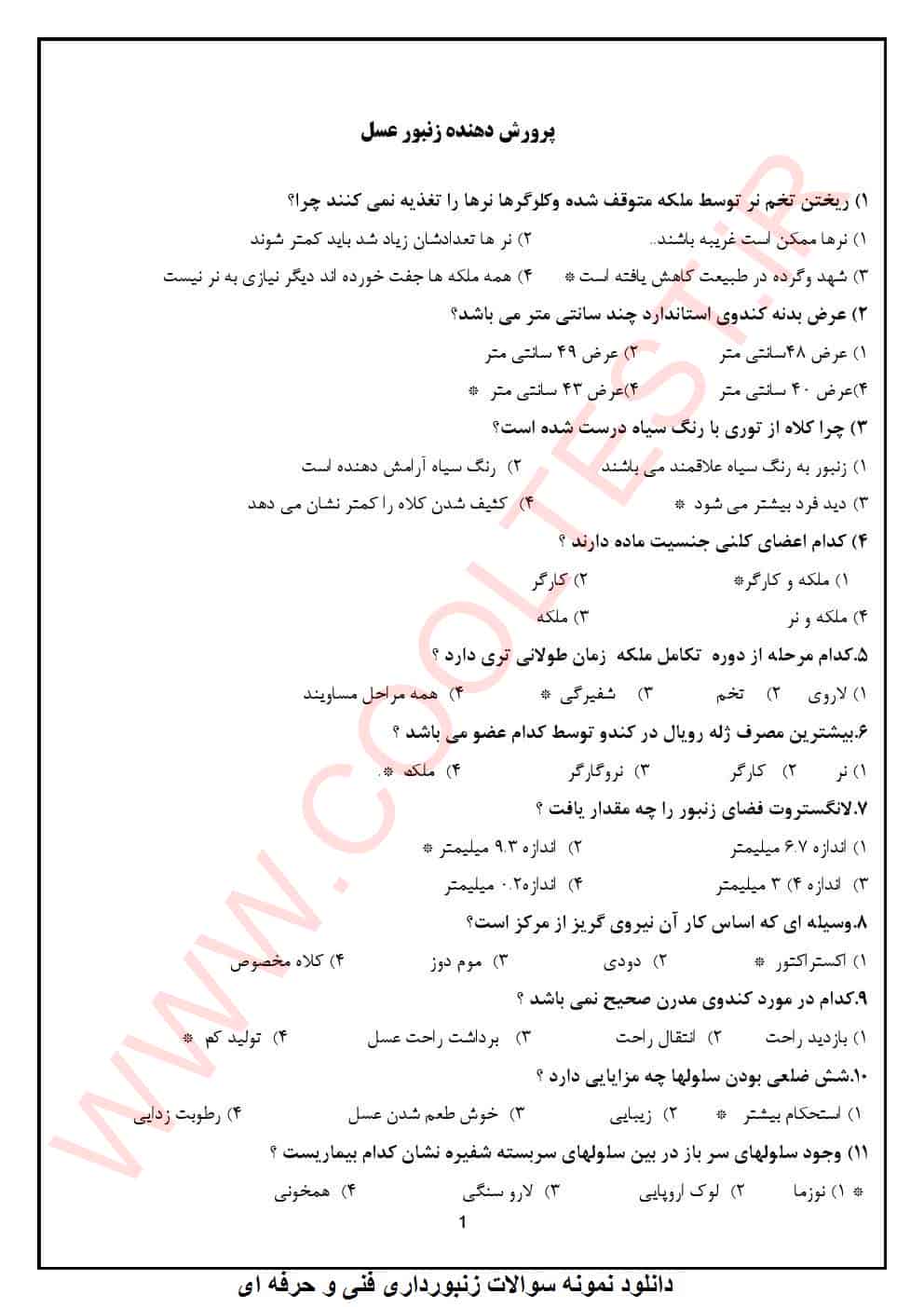 سوالات تخصصی آزمون زنبورداری: