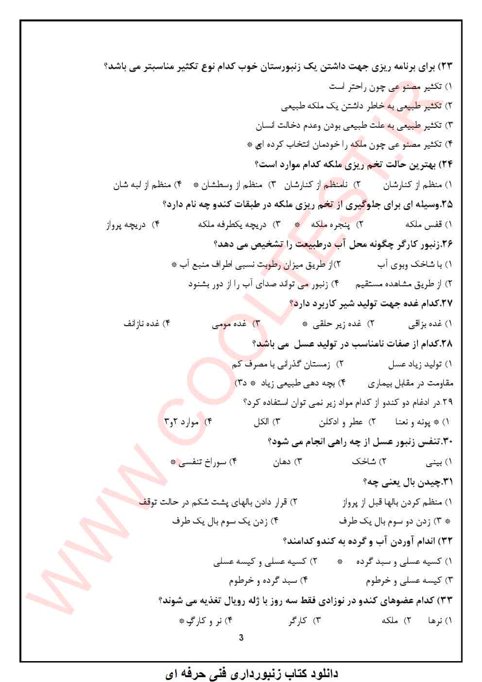 دانلود رایگان PDF سوالات آزمون زنبورداری فنی حرفه‌ ای 1404