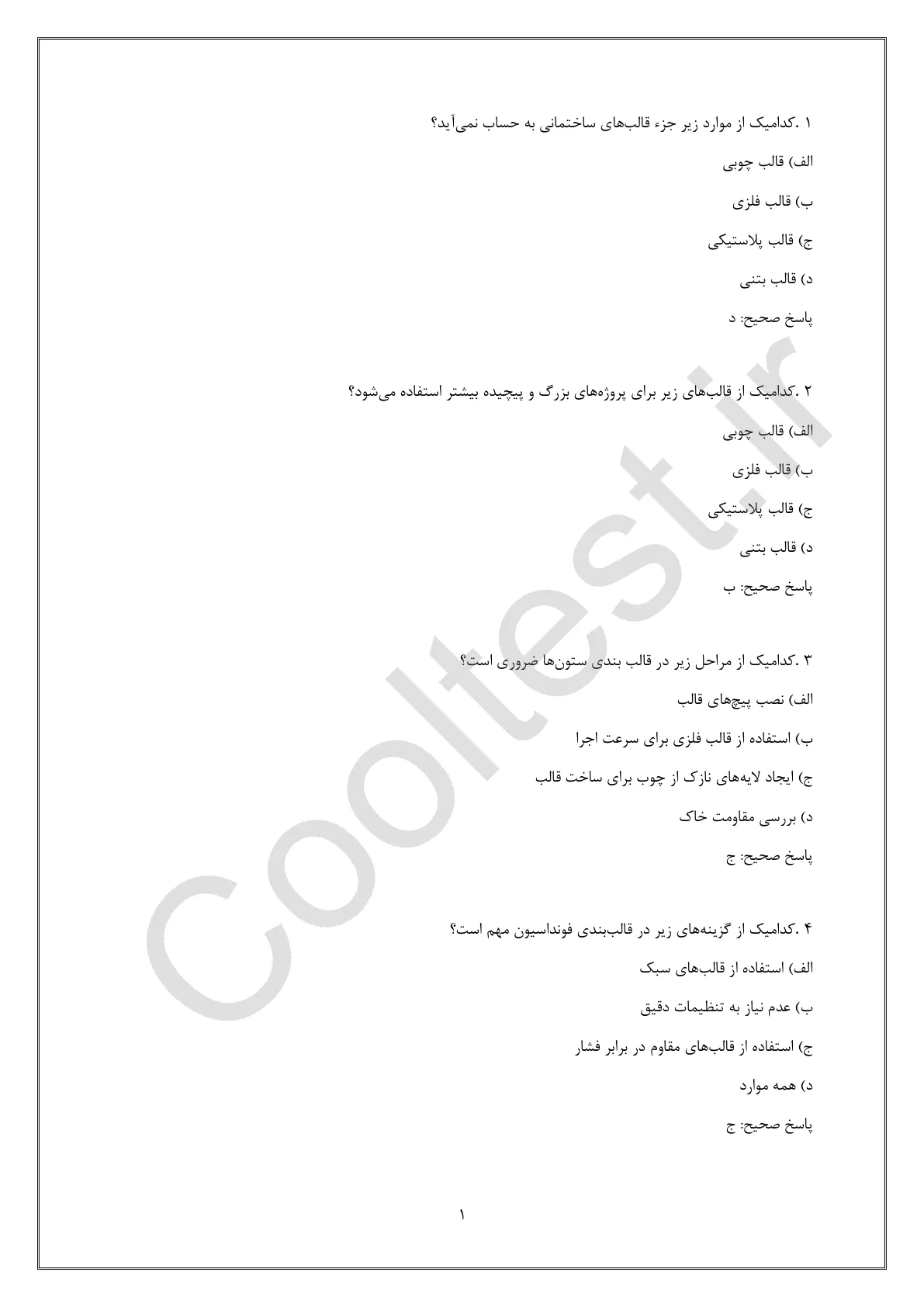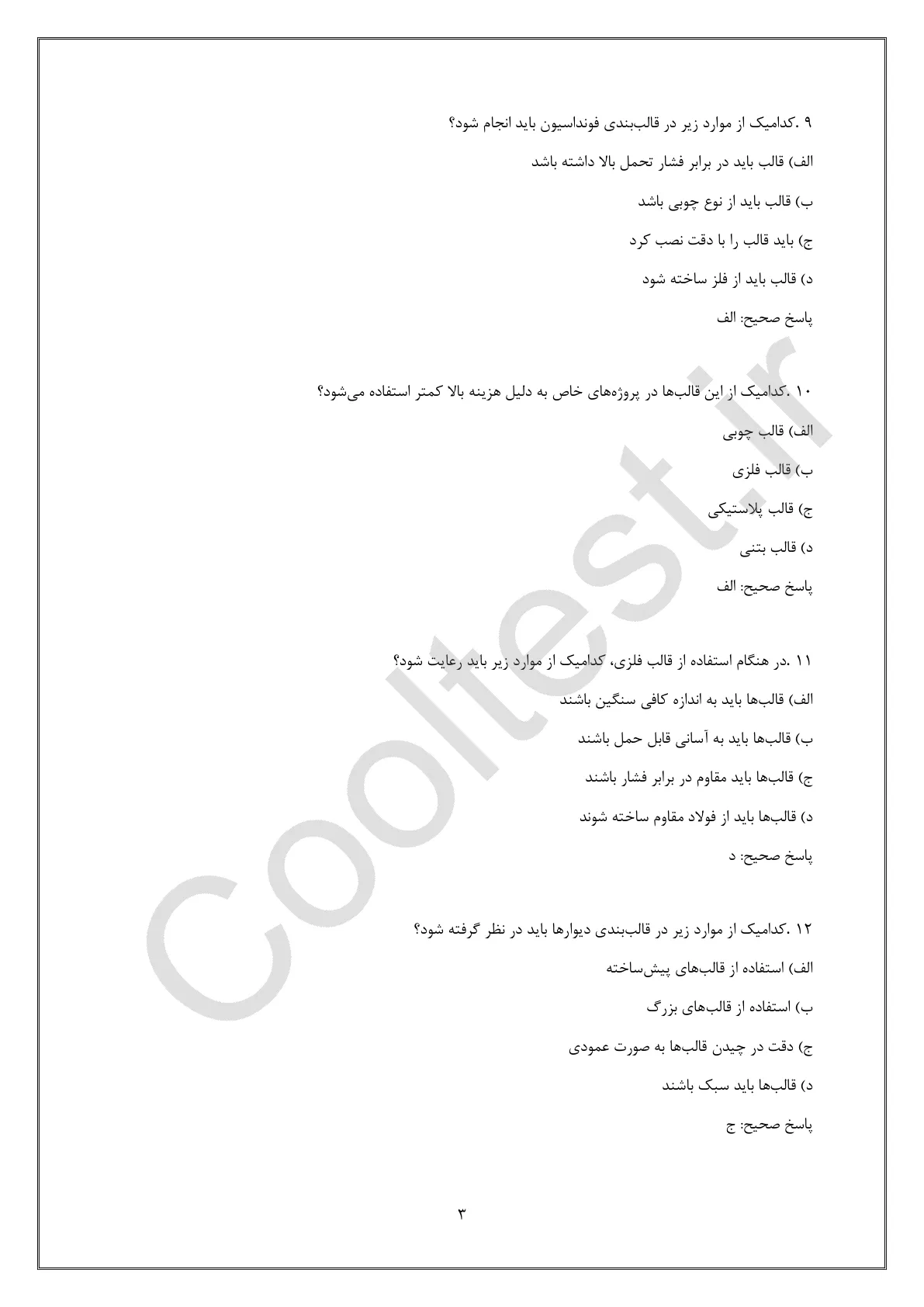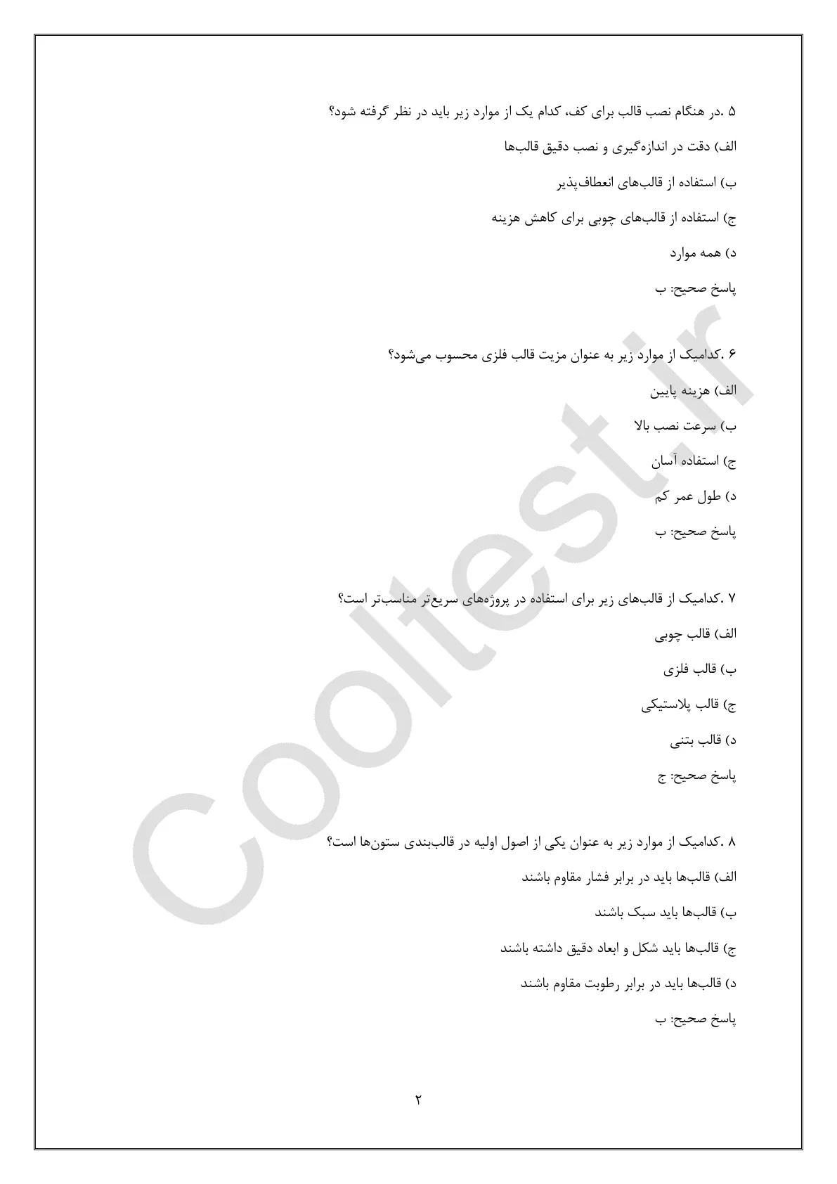نمونه سوالات قالب بند و کفراژ بند شامل ۲۸۵ سوال با جواب از سایت کول تست