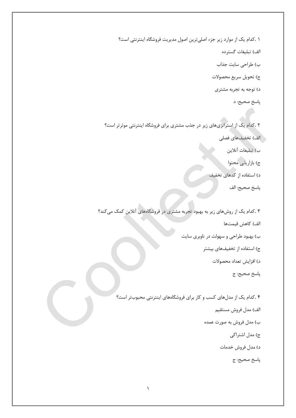 سایت کول تست بهعنوان یک مرجع معتبر، مجموعه سوالات کامل مدیریت فروشگاه اینترنتی را با پاسخ های تشریحی گردآوری کرده است. این سوالات به شما کمک میکنند تا با تمرکز و دقت بیشتری برای آزمون آماده شوید و مفاهیم کلیدی را بخوبی یاد بگیرید.