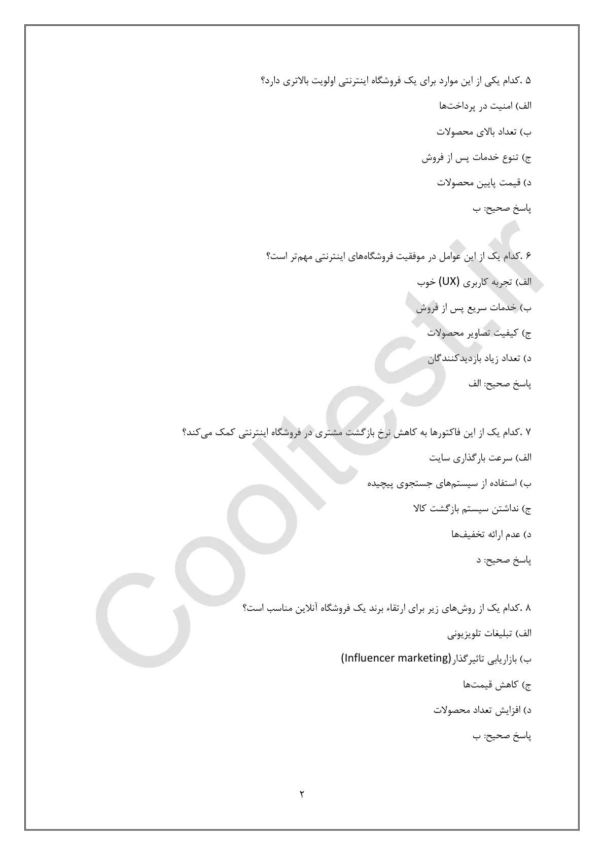 با مراجعه به سایت کول تست و دانلود فایل PDF، میتوانید به سوالات دسترسی پیدا کنید.