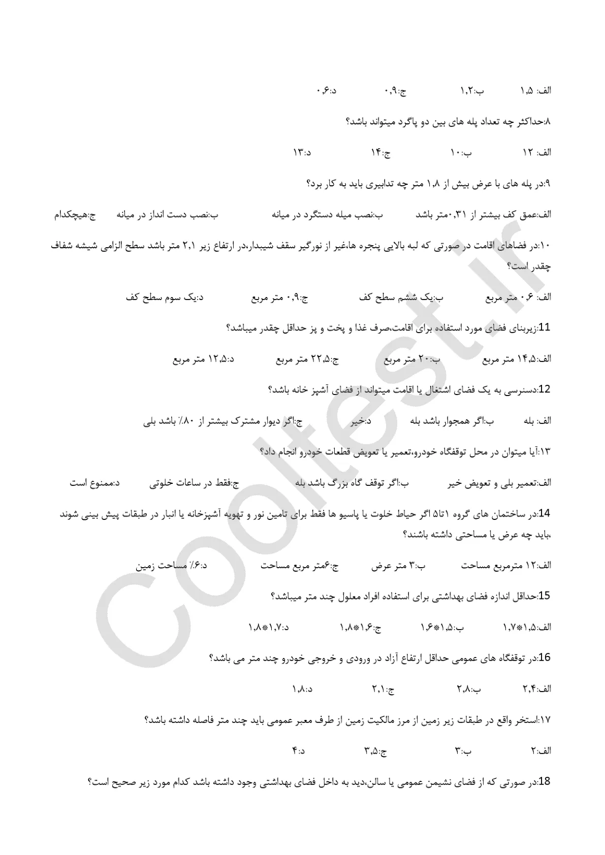 | ۹ | مقررات آتشنشانی و ایمنی در ساختمانها |