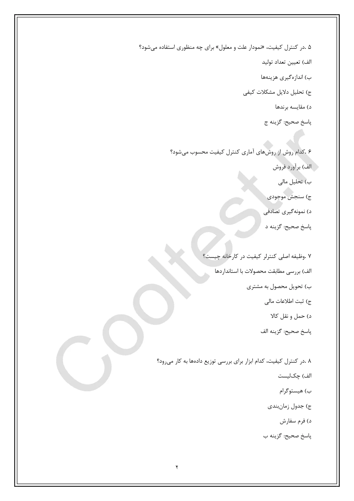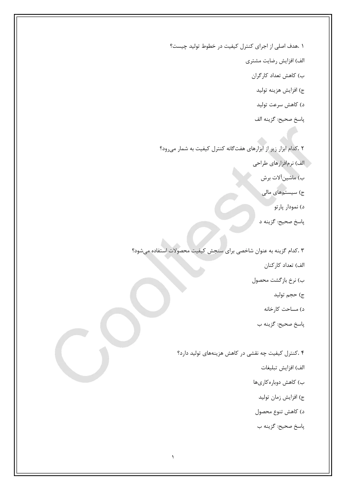 مجموعه کامل نمونه سوالات آزمون کنترلر کیفیت فنی حرفه ای با پاسخهای تشریحی